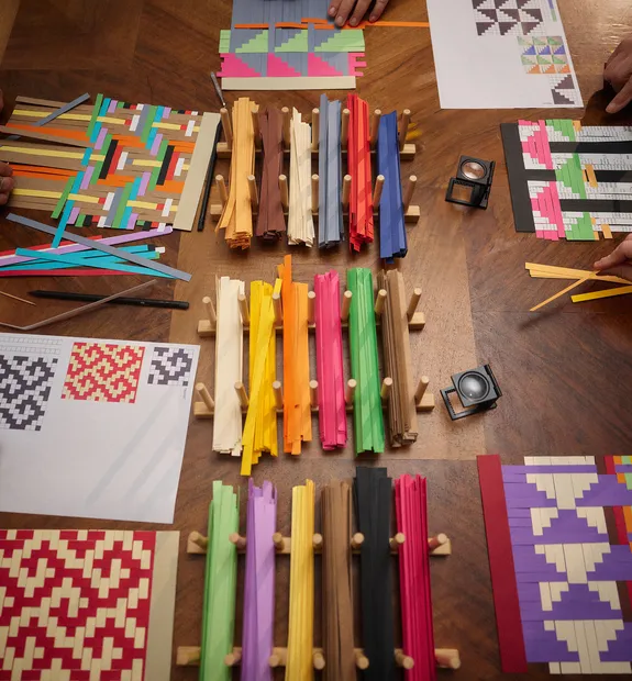 Descobrir as texturas de Portugal Uma experiência imersiva onde a tecelagem se transforma em gesto, ritmo e ligação. Neste workshop, os participantes exploram o ato de tecer através do papel — um material simples, tátil e inesperado. Ao entrelaçar tiras de cor, descobrem como a repetição e a variação constroem padrões, estruturas e identidade. Inspirado na tradição têxtil e artesanal portuguesa, o workshop convida a abrandar, usar as mãos e criar ao seu próprio ritmo. Cada tecelagem em papel é única, resultado das escolhas pessoais de cor, ritmo e composição.